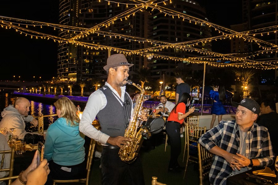 Relax on board a luxury vessel while enjoying a welcoming atmosphere, delicious international cuisine and live music that sets the perfect tone for an unforgettable evening on the water.