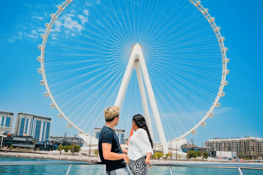 Pass iconic landmarks including Bluewaters Island, Palm Jumeirah, Ain Dubai, Atlantis, and the Burj Al Arab