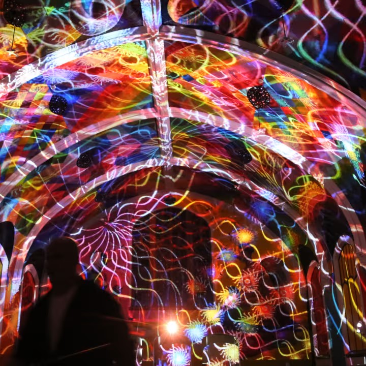 Experience breathtaking laser projections in a cathedral setting