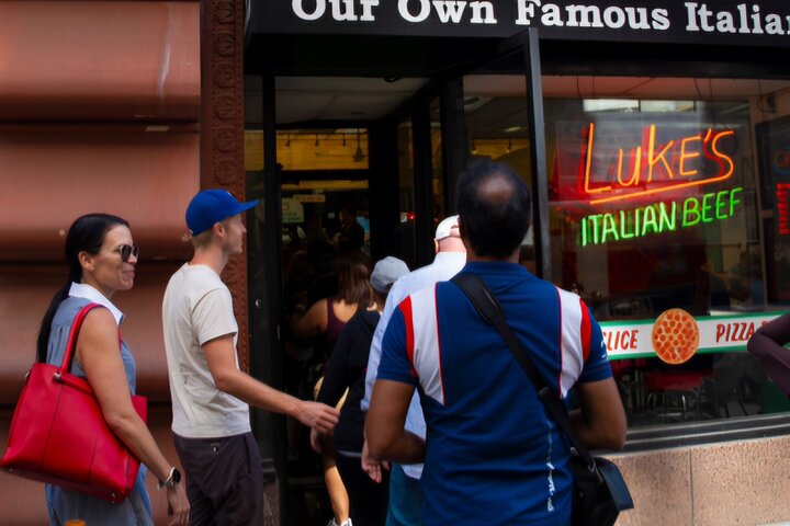 Taste five iconic Chicago-style foods, including deep-dish pizza, hot dogs, and classic snacks